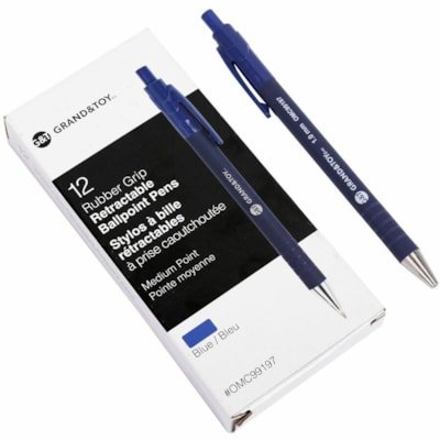 Grand and Toy Rubber Barrel Retractable Ballpoint Pens Blue Medium 1.0 mm 12/BX – 1 mm Medium Round Pen Point – Refillable – Retractable – Blue Ink – Blue Barrel – 12 / Box